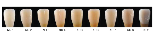 The IPS Natural Die Material Shade Guide shows all shades available in the IPS Natural Die Material.